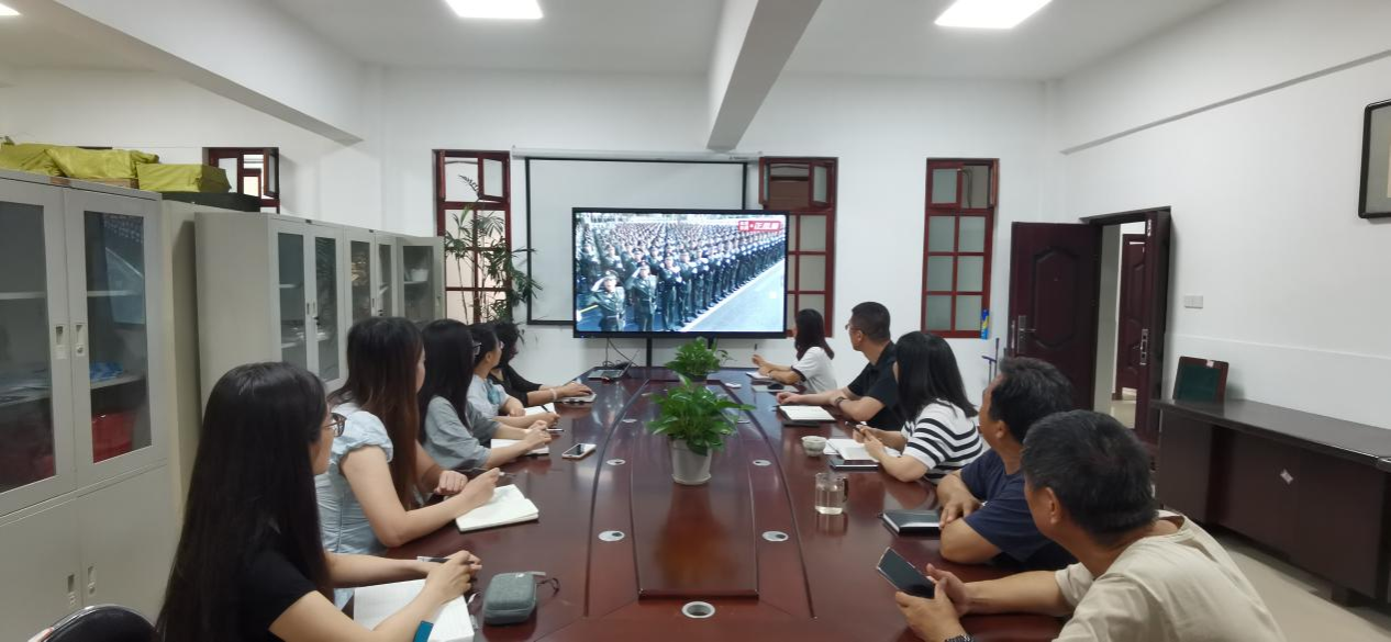 观看过程中,阅兵仪式的恢弘场面、各兵种官兵铿锵有力的步伐与英姿飒爽的风貌,以及各式自主研发的尖端武器装备,让在场的每一位教职工心潮澎湃、倍感自豪。当分列式进行曲响起时,“旗帜里有国家荣誉,步伐里有英烈忠魂”的强烈共鸣涌上心头,浓烈的爱国情怀和对祖国强大的自豪感洋溢整个会议室。
